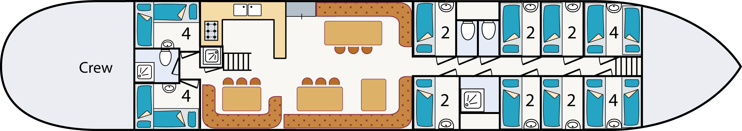 In het seizoen organiseren we elke maand een 55+ comfort reis. We zorgen voor veel ruimte aan boord omdat we niet alle bedden boeken. Een kok zorgt voor uw maaltijden.